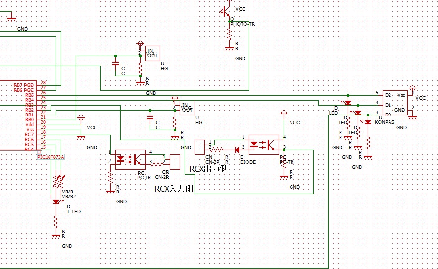 これは(説明略)というもので、これをPICで制御してRCXと通信してました。