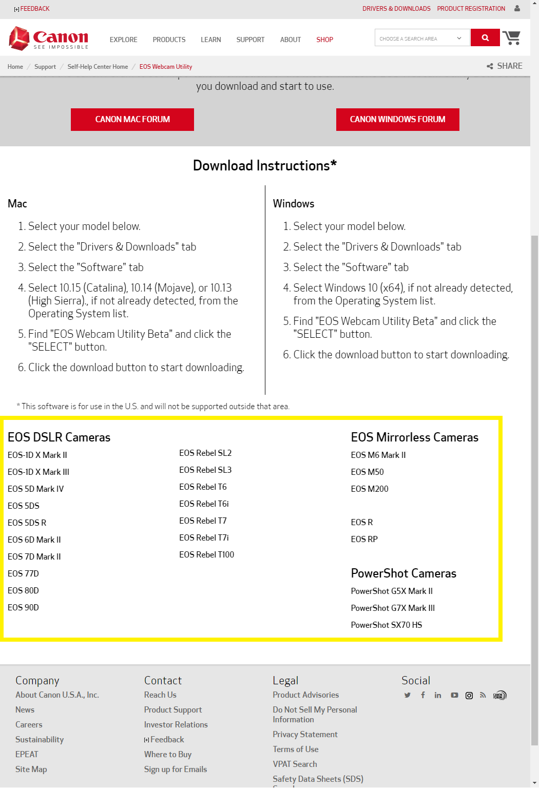 次は一番上にあるEOS Webcam Utility BetaをDLします。